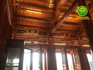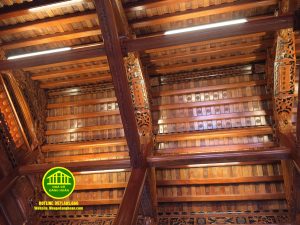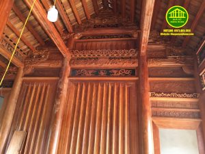 - Nhà gỗ 5 gian có 33 cột cái, 29 cột con, 25 cột hiên, dầm lách vuông 25.