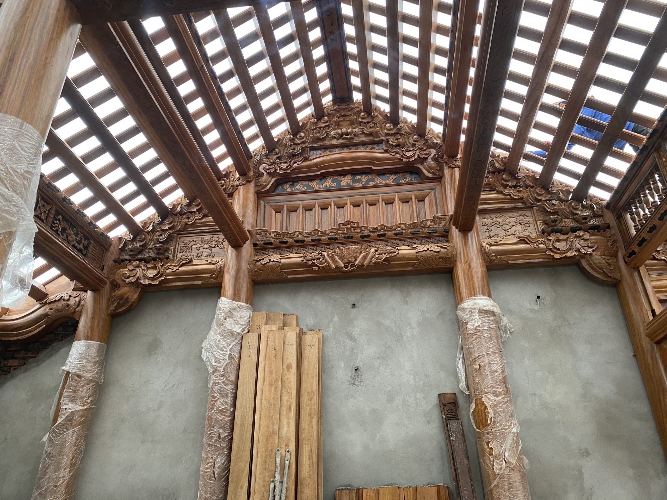 Một số hình ảnh của căn nhà gỗ lim 3 gian trong quá trình xây dựng thiết kế