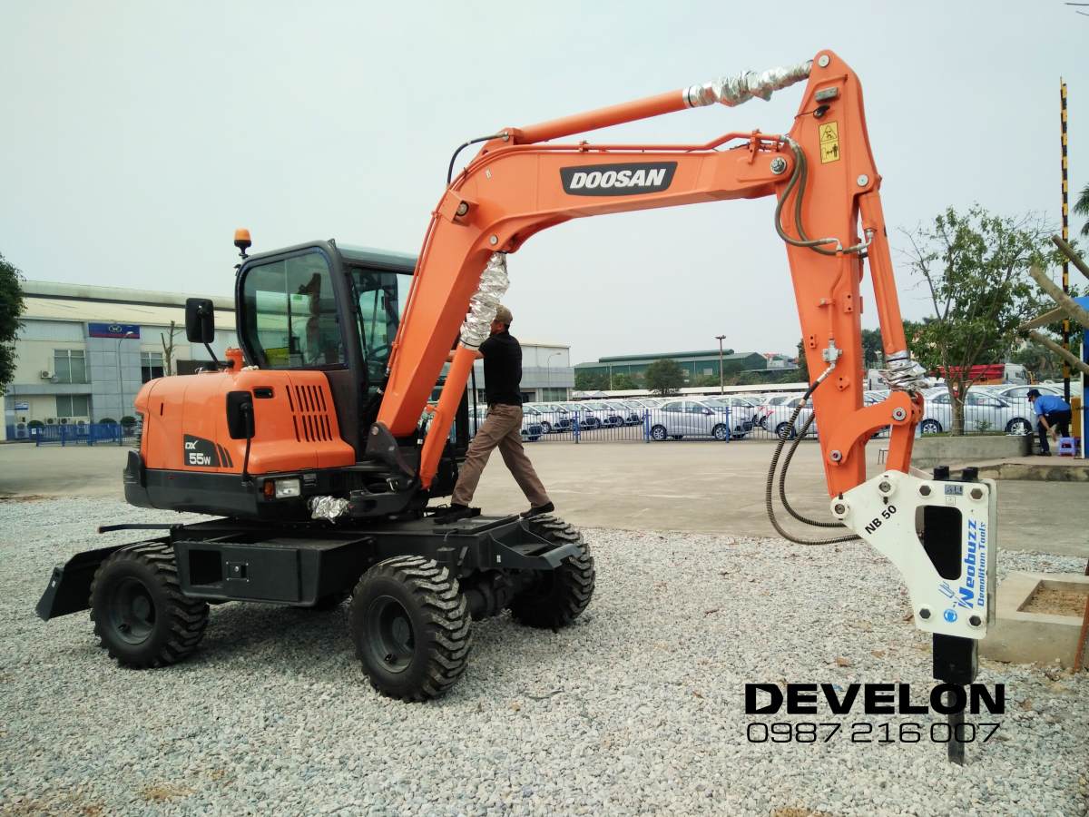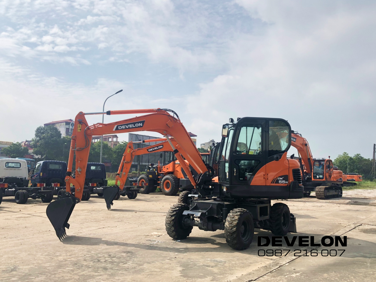 Máy xúc Develon Bánh Lốp DX55W mới ra mắt thay thế cho thương hiệu Máy xúc Develon Bánh Lốp DX55W với giá chỉ hơn 1 tỷ đồng phù hợp cho các công việc như đào rãnh, làm móng và phá dỡ. Sản phẩm đạt tiêu chuẩn của tập đoàn Doosan Develon toàn cầu được bảo hành 2 năm hoặc 4000 giờ.
