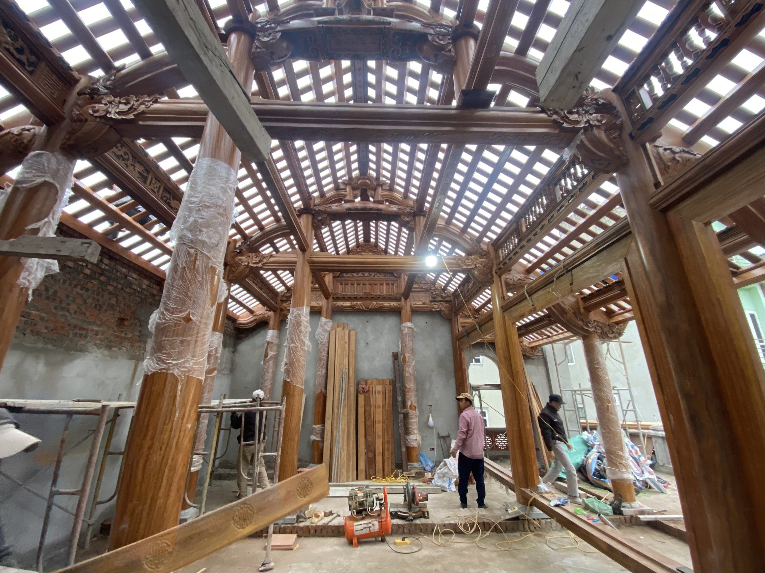 Hình ảnh nhà gỗ 3 gian 22 cột lắp dựng Thanh Hóa